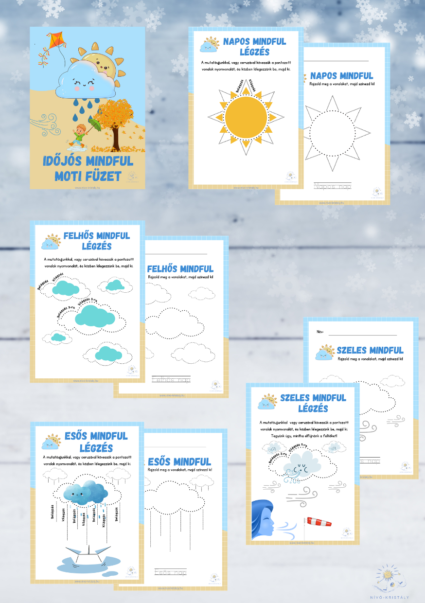 - Időjós Mindful Moti füzet (digitális termék), ami 8 db időjárással kapcsolatos játékos mindful tevékenységet tartalmazz 6-12 éves korú gyermekek számára, melynek értéke 1.500 Ft.
